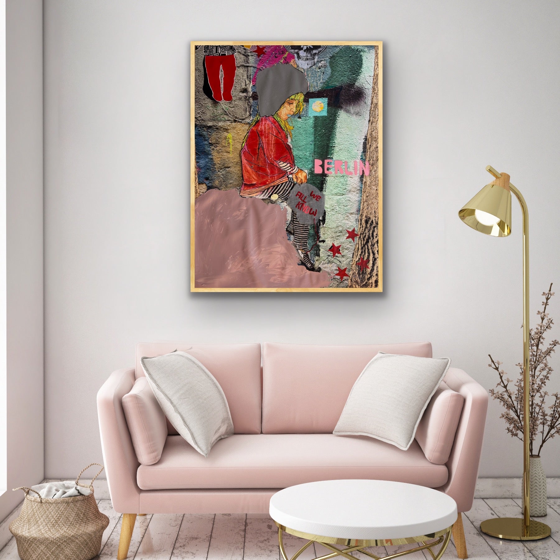 Bearbejdet foto med akryl, garn, spraymaling, kridt og tusch. Smukt Indrammet med egetræsramme og museumsglas. Museumsglas er refleksfri og du kan derfor nyde din kunst fra alle vinkler - også når solen står direkte på.