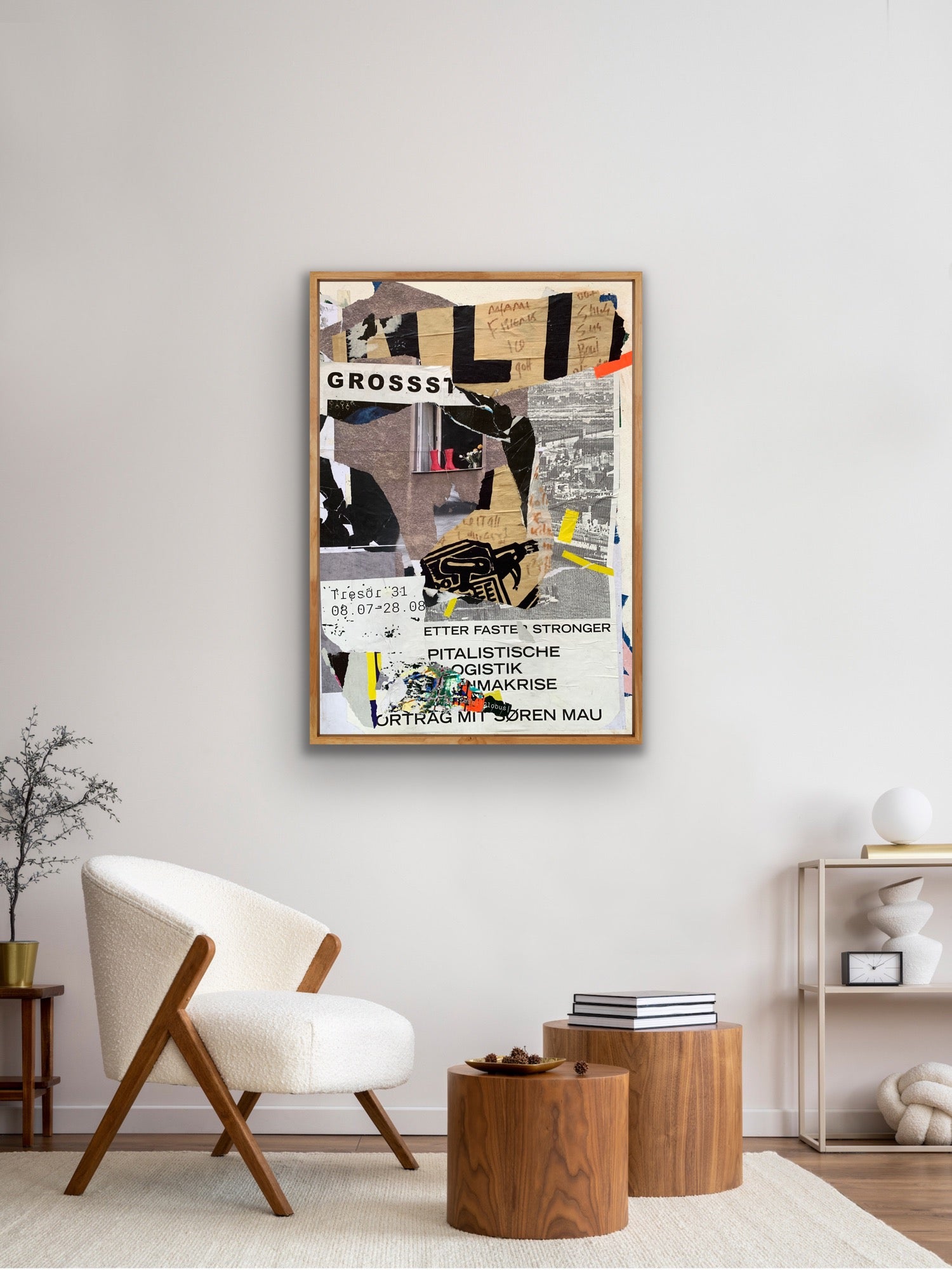 Denne plakat er baseret på et originalt collage-motiv skabt af sammensatte, indsamlede plakater fra Berlin med tydelige spor af slid, lag og urbane fortællinger. Rivninger, farver og grafiske elementer smelter sammen i et råt og levende udtryk, der giver værket kant og karakter.