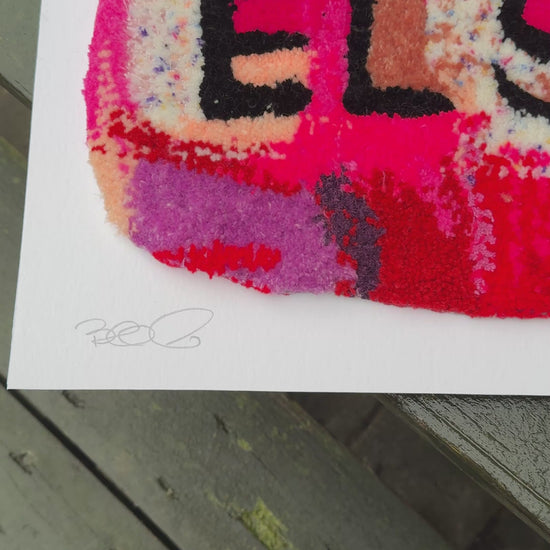 Tuftet i garn af forskellige tykkelser og materialer, der skaber en lækker 3D-effekt og taktil oplevelse.