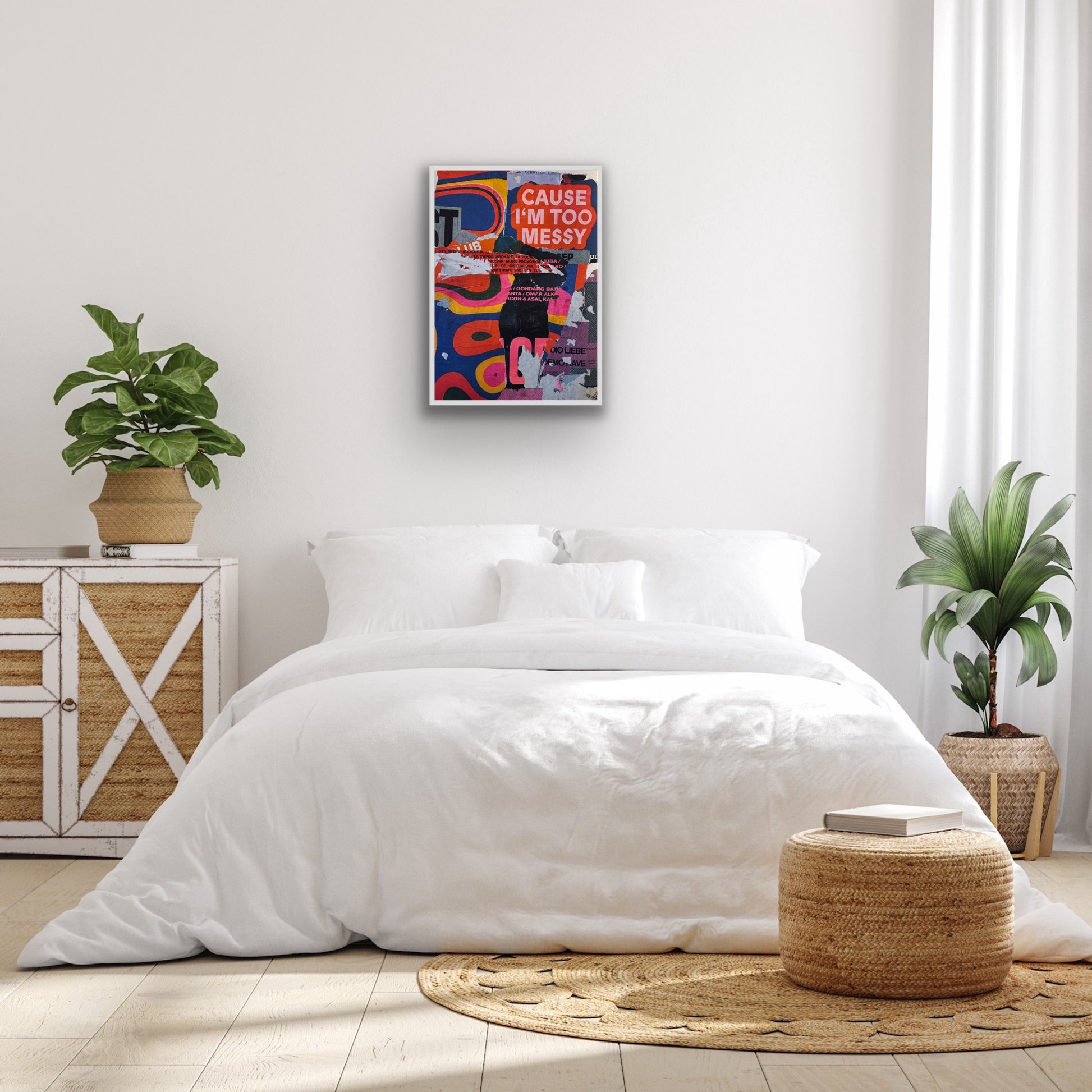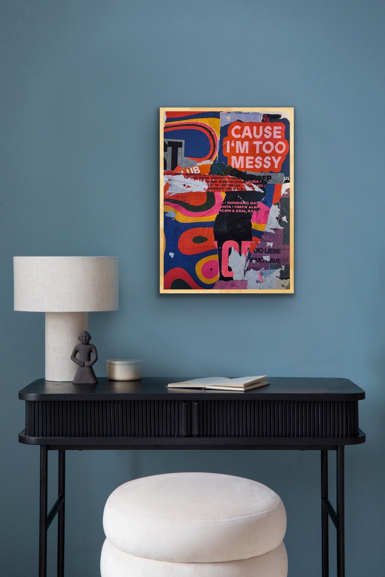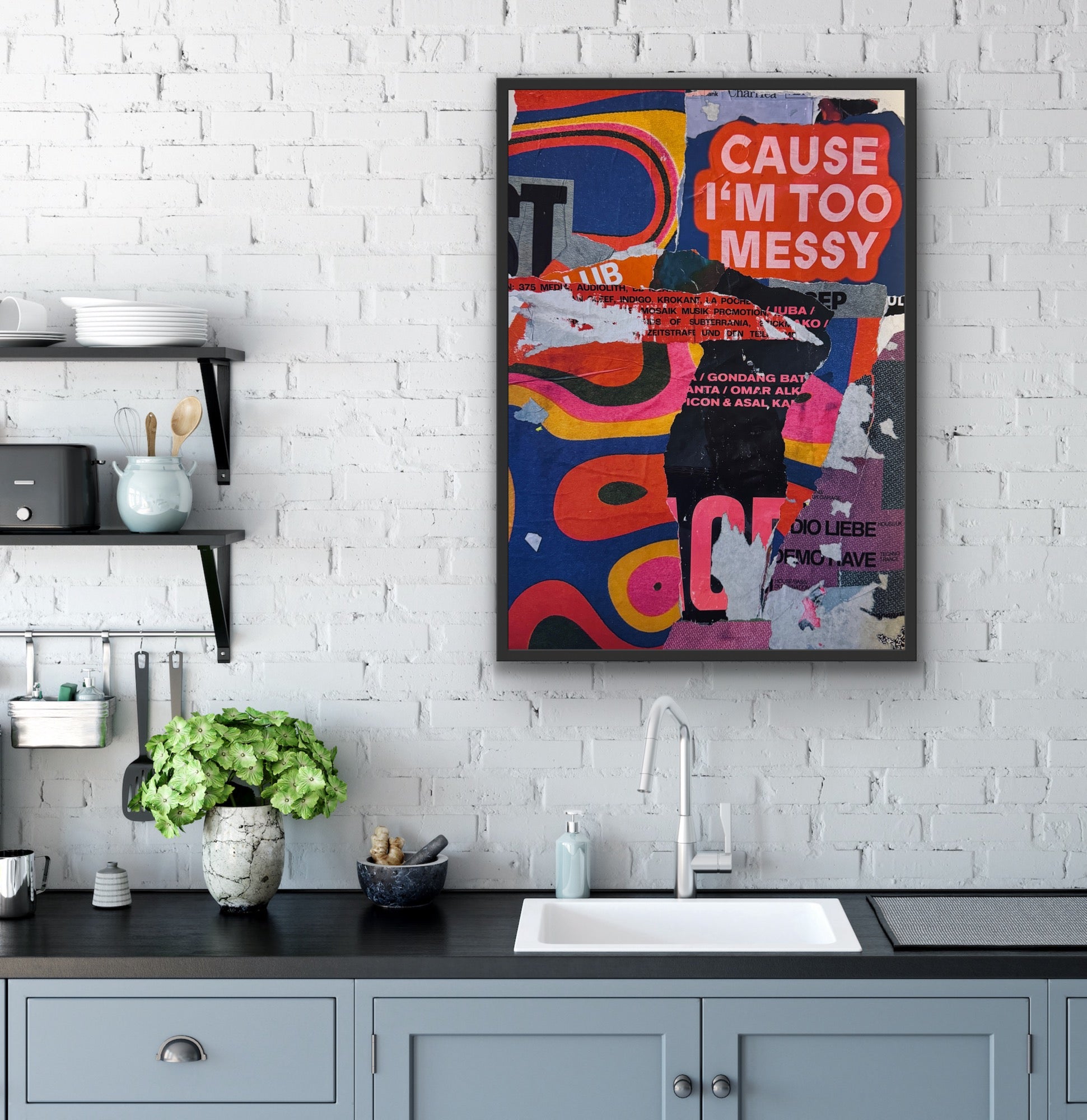 I’m Too Messy er en dynamisk og farverig kunstplakat skabt af en collage af plakater indsamlet i Hamburg. De rå lag, små detaljer og grafiske kontraster giver værket et levende udtryk, der både er legende og kantet – perfekt til dig, der elsker kunst med personlighed.