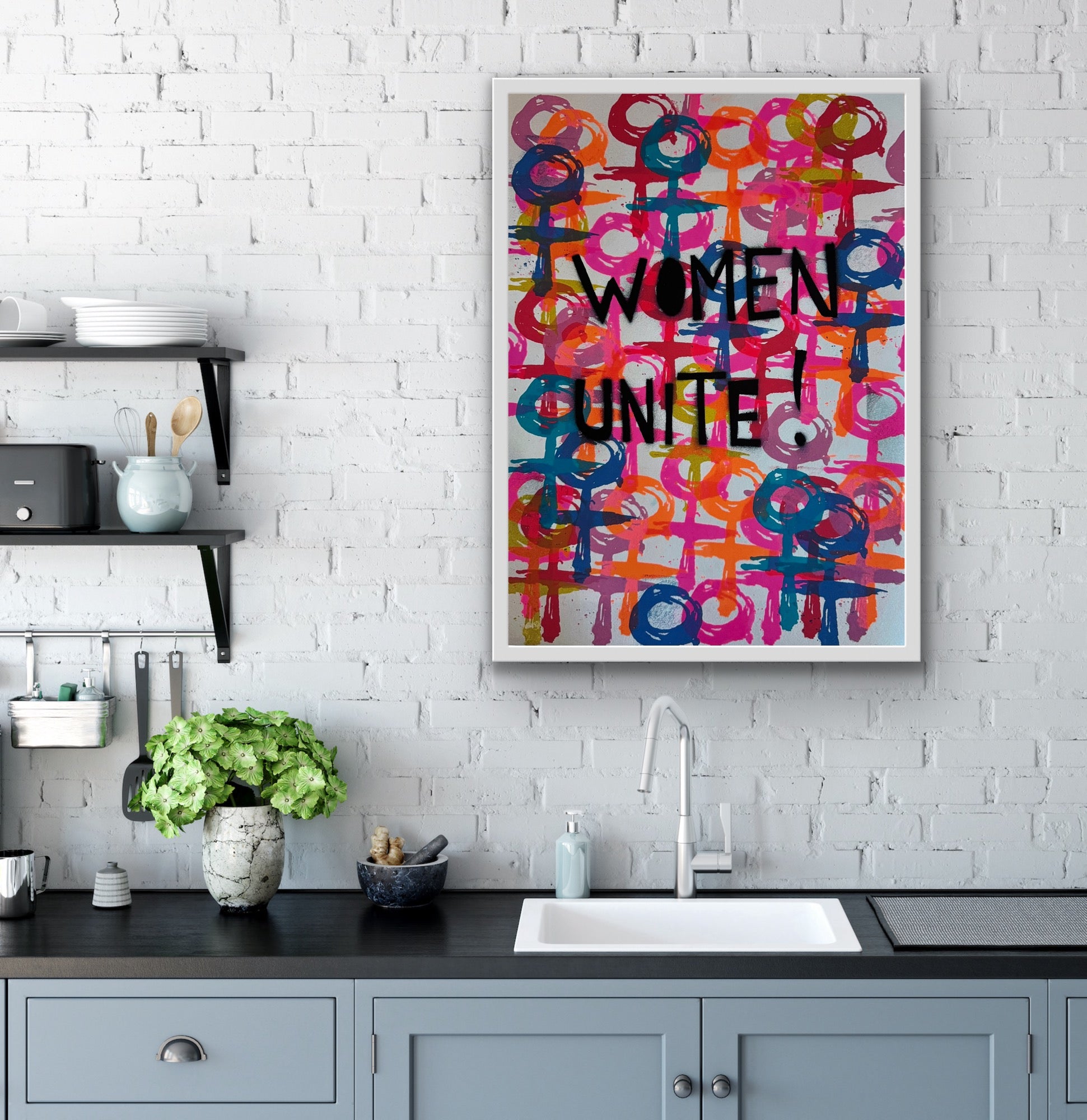 Et stærkt og poetisk motiv, hvor en hær af kvindetegn står samlet – kvinder, der støtter kvinder.