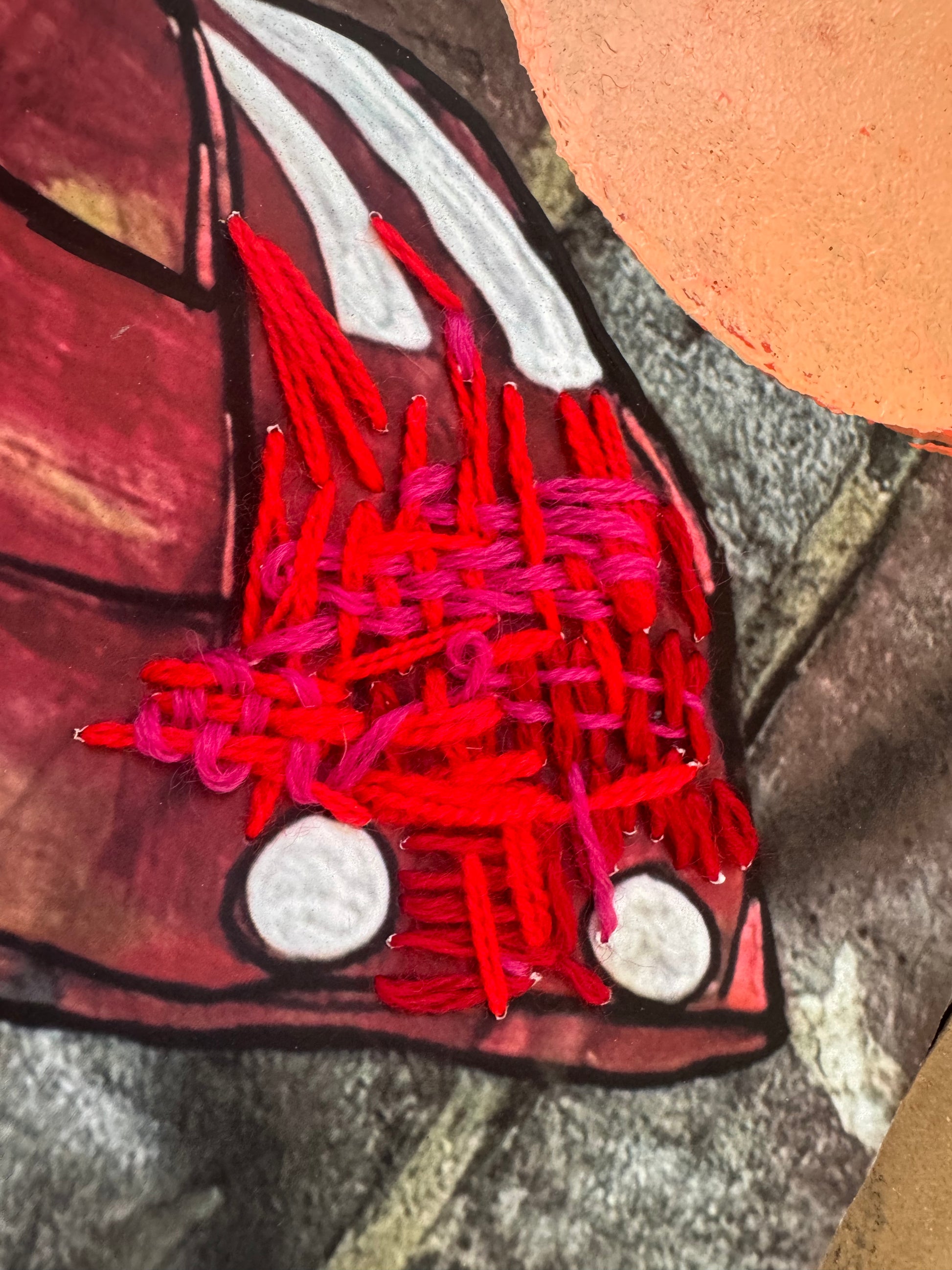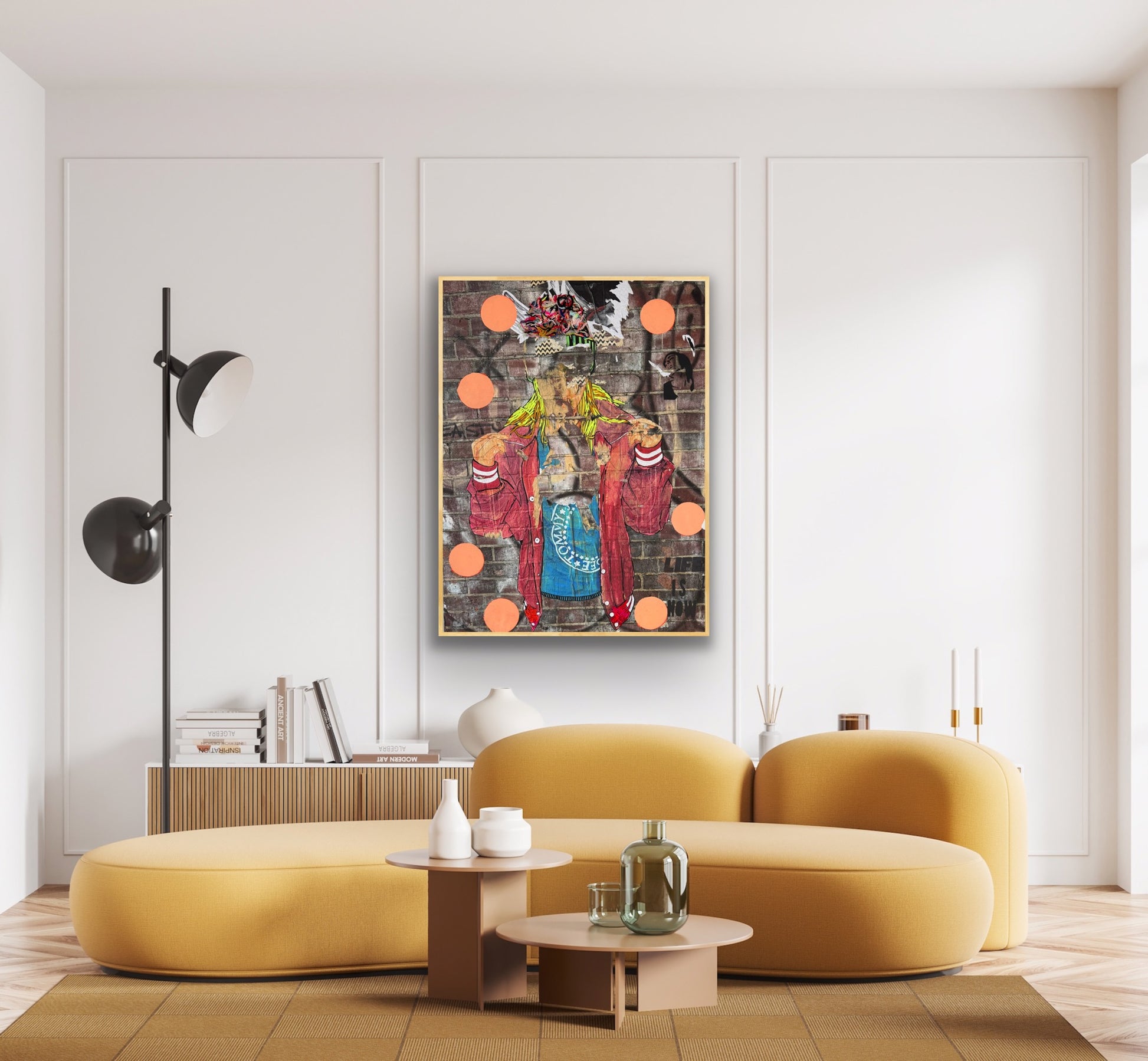 Bearbejdet foto med akryl, garn, spraymaling, kridt og tusch. Smukt Indrammet med egetræsramme og museumsglas. Museumsglas er refleksfri og du kan derfor nyde din kunst fra alle vinkler - også når solen står direkte på.