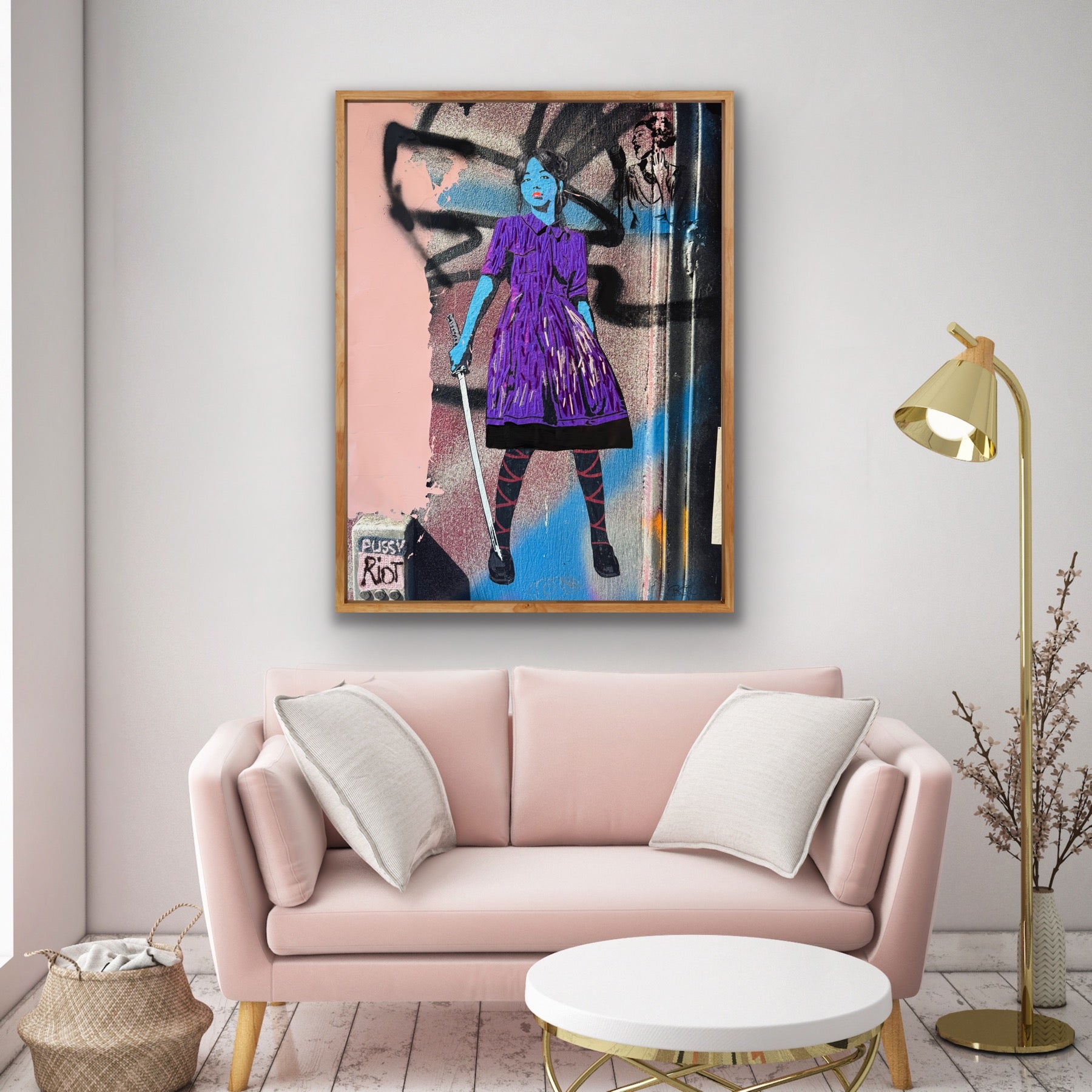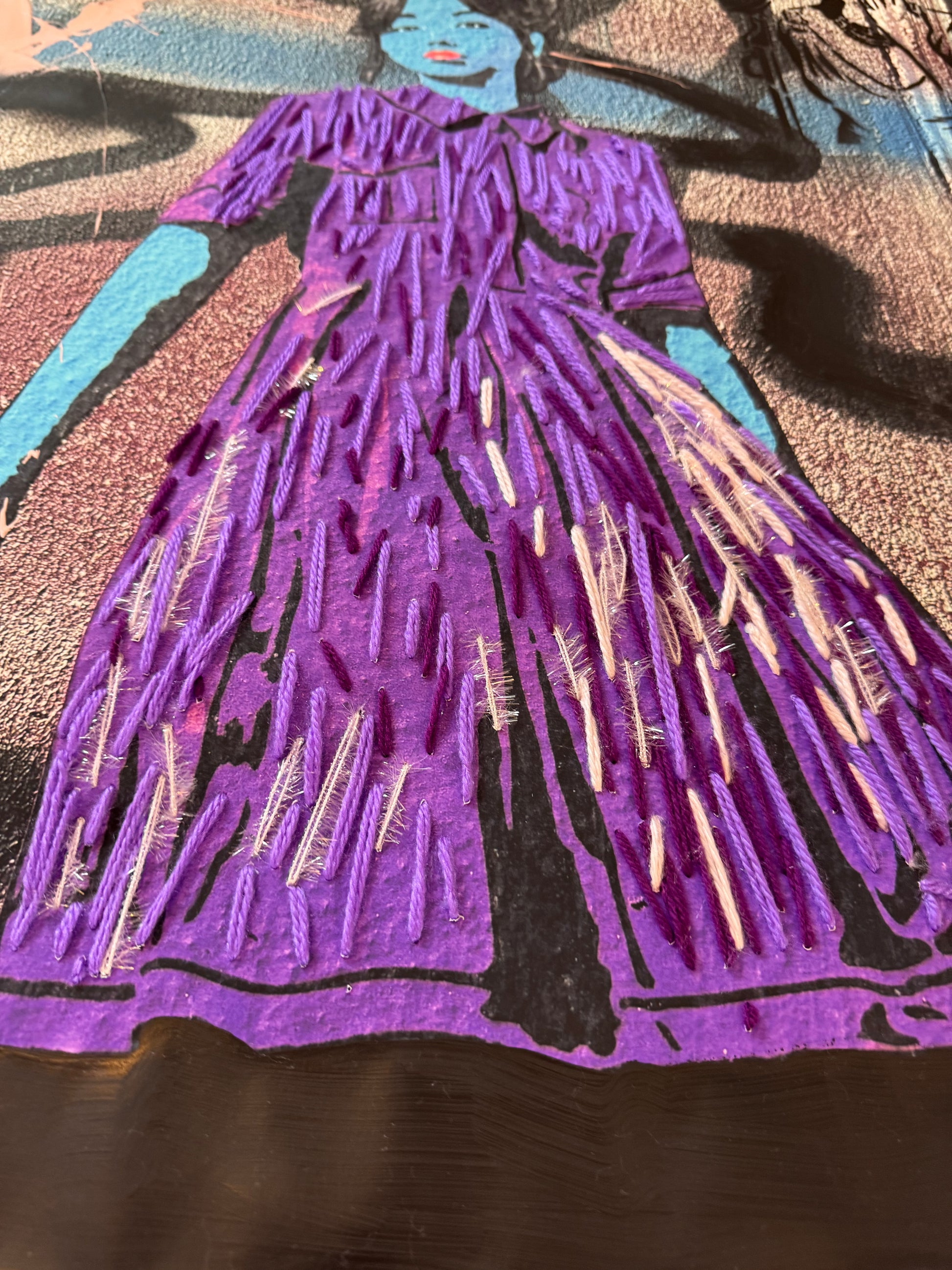 Bearbejdet foto med akryl, garn, spraymaling, kridt og tusch. Smukt Indrammet med egetræsramme og museumsglas. Museumsglas er refleksfri og du kan derfor nyde din kunst fra alle vinkler - også når solen står direkte på.